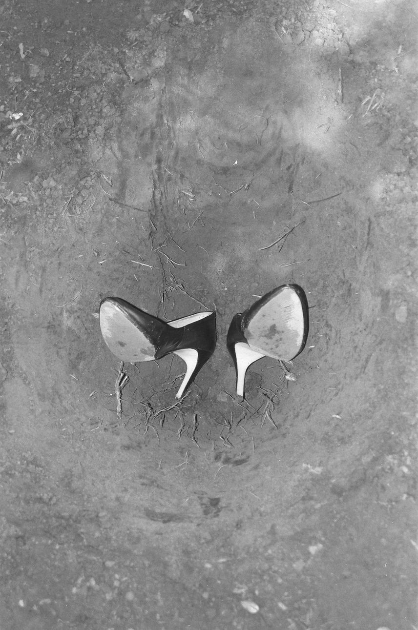 The shoes were buried during a performative burial, a ritualistic micro-funeral in a self-dug grave at Grobla in Wrocław.